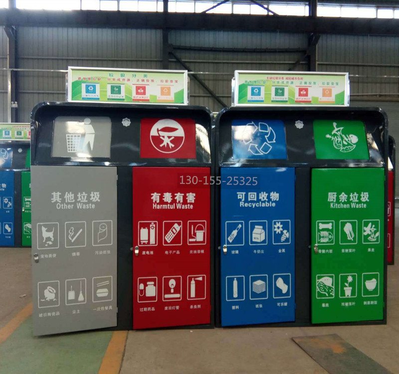 分類垃圾桶整體采用優(yōu)質(zhì)冷軋鋼板加工而成,表面經(jīng)過除油、噴砂防銹處理后,再進行酸洗磷化處理;表面清理干燥后整體進行靜電噴涂或烤漆處理,靜電噴涂是經(jīng)過流水線高溫固化爐固化后再出爐冷卻,加工后的塑粉附著力強,不易剝落。
