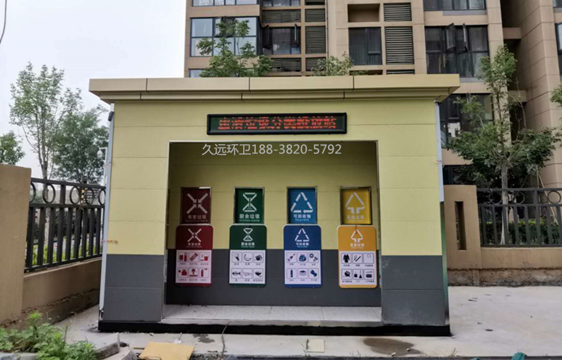 生活垃圾分類投放站廠家定制——久遠環(huán)衛(wèi)是一家集研發(fā)生產(chǎn)、銷售服務(wù)為一體的大型環(huán)衛(wèi)設(shè)備生產(chǎn)企業(yè),公司注冊資金5000萬元,占地面積50余畝,擁有現(xiàn)代化生產(chǎn)車間1萬余平方米,辦公面積1000余平方米,在職員工200多人,具有雄厚的技術(shù)及生產(chǎn)實力。 公司主要生產(chǎn)垃圾壓縮中轉(zhuǎn)站、垃圾分類收集房、環(huán)保移動公廁、各類垃圾桶果皮箱、環(huán)衛(wèi)工具箱、環(huán)衛(wèi)道班房、崗?fù)?、休閑座椅、等公共環(huán)衛(wèi)設(shè)施。